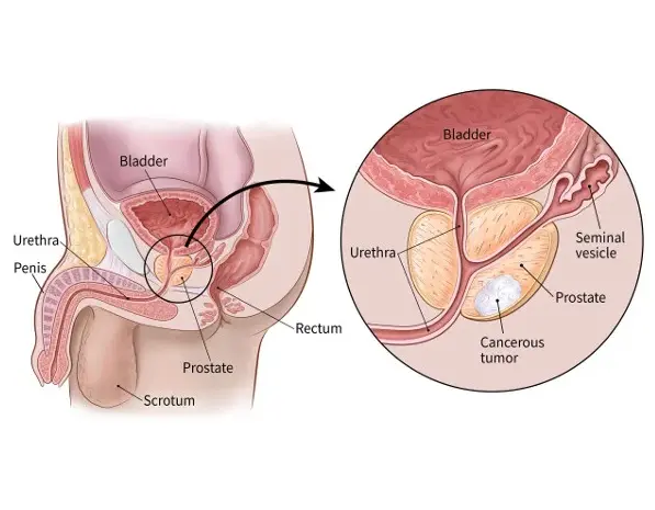 Prostate cancer is a disease in which malignant (cancer) cells form in the tissues of the prostate in males. The prostate gland is located in front of the rectum, just below the bladder (the organ that collects and empties pee) (the lower part of the intestine). It’s about the size of a walnut and protects the urethra (the tube that empties urine from the bladder). The prostate gland produces a fluid that is a component of the semen.